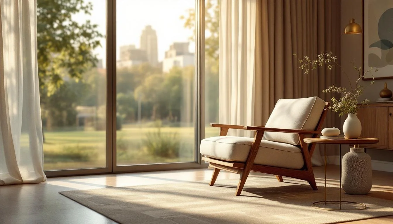 Staging the piece within a living space—complemented by décor, lighting, and greenery